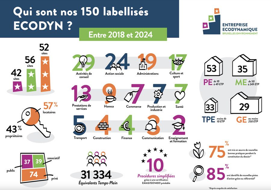 Le Label Entreprise Écodynamique est une reconnaissance officielle et gratuite de la Région de Bruxelles-Capitale, pilotée par Bruxelles Environnement. Créé en mai 1999, il soutient les entreprises, les associations et les institutions basées en Région bruxelloise dans leur transition vers des pratiques plus respectueuses de l’environnement.